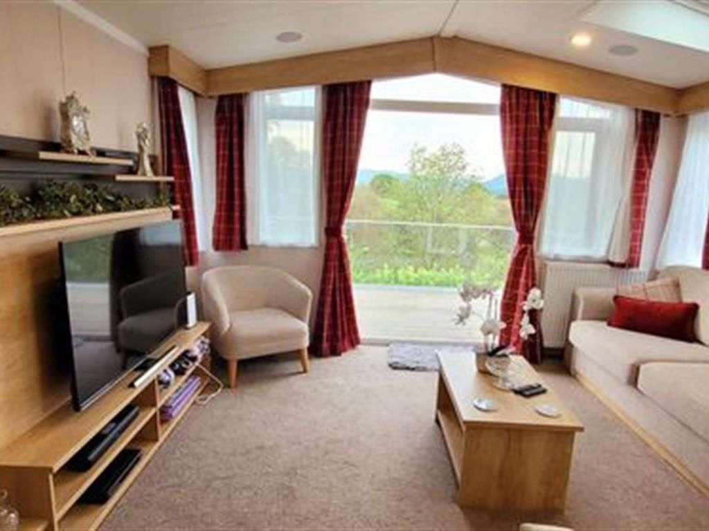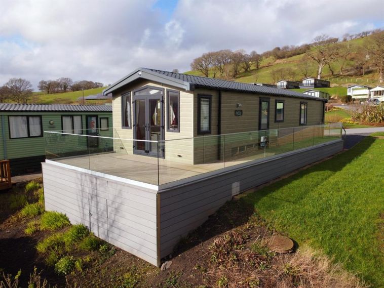 The pre-owned Swift Biarritz Lodge is located on an elevated position with terrific views over the Dyfi Valley.
