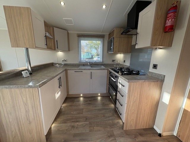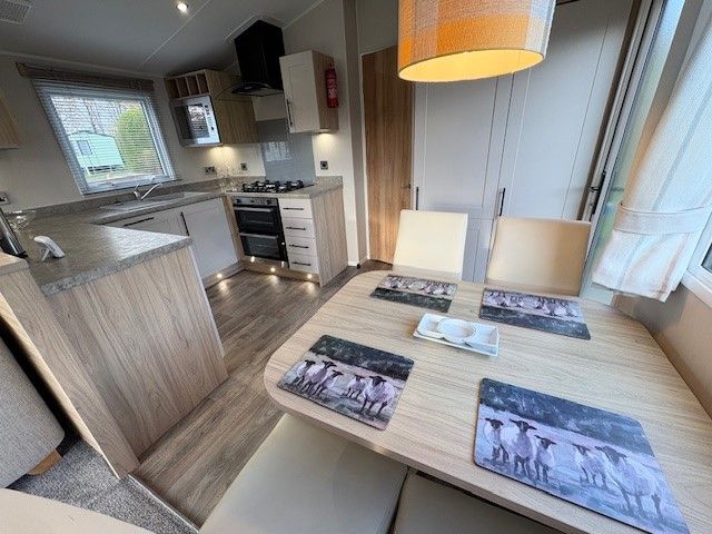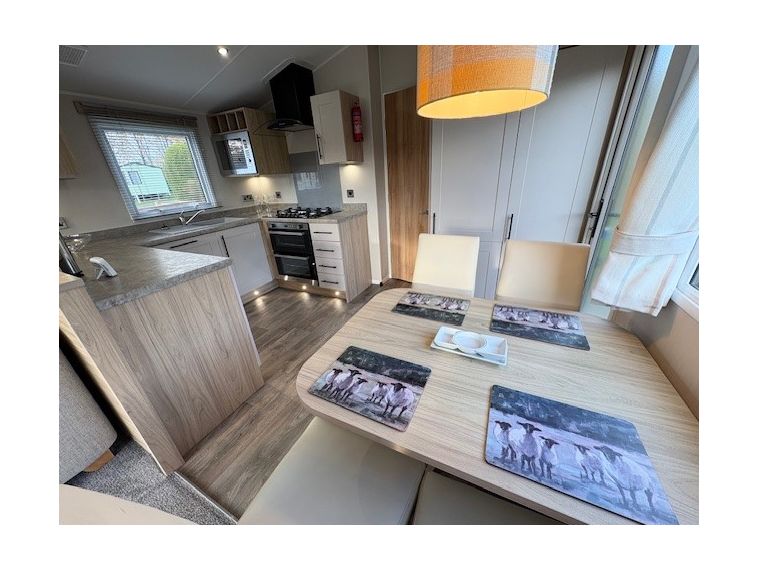 Located on plot 61 at Dolgead Hall, this pre-owned holiday home is in superb condition throughout and includes side decking and metal storage shed.