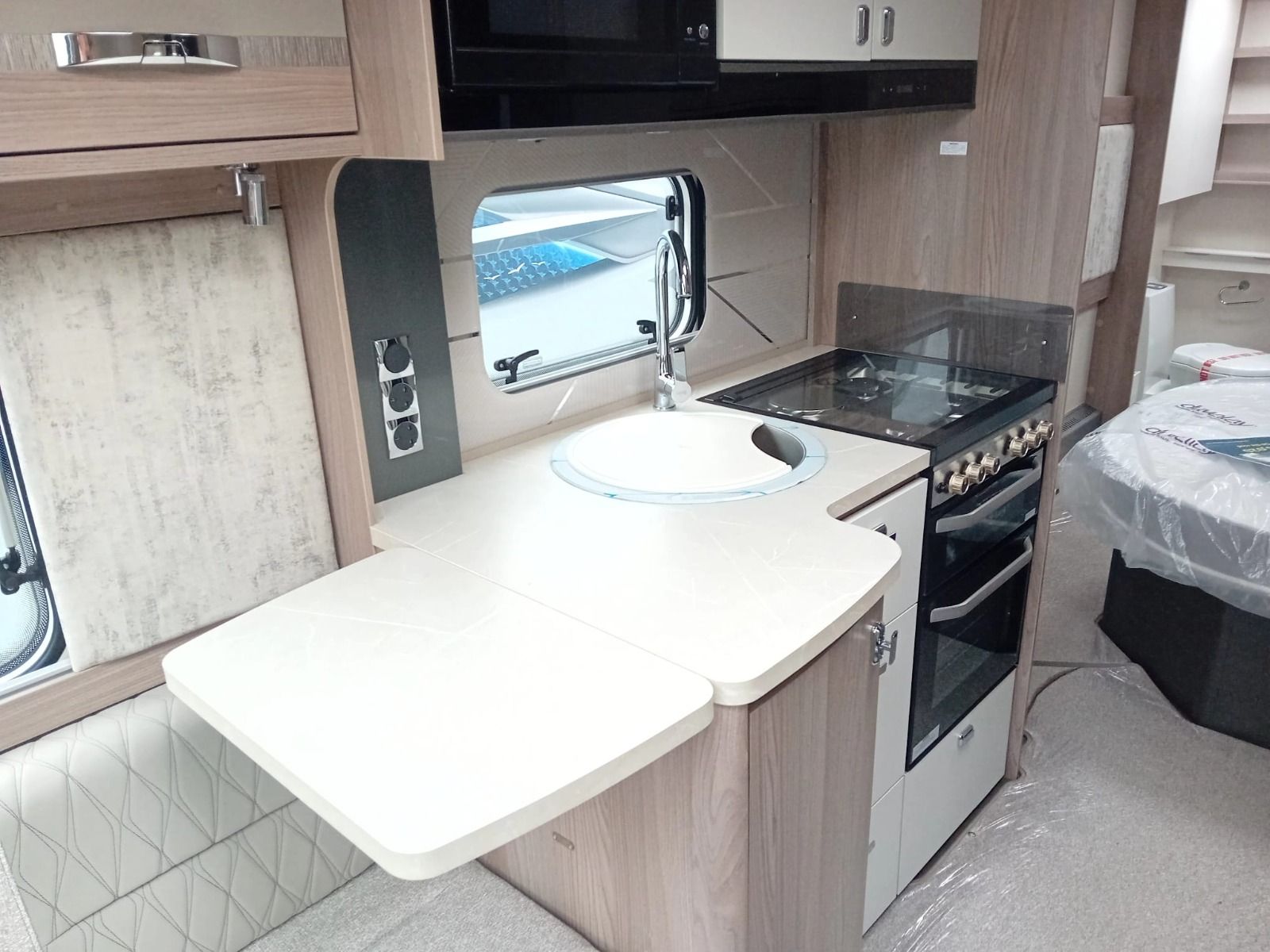 An 8ft-wide 4-berth caravan offering premium comfort, modern technology, and extra space for a superior touring experience.