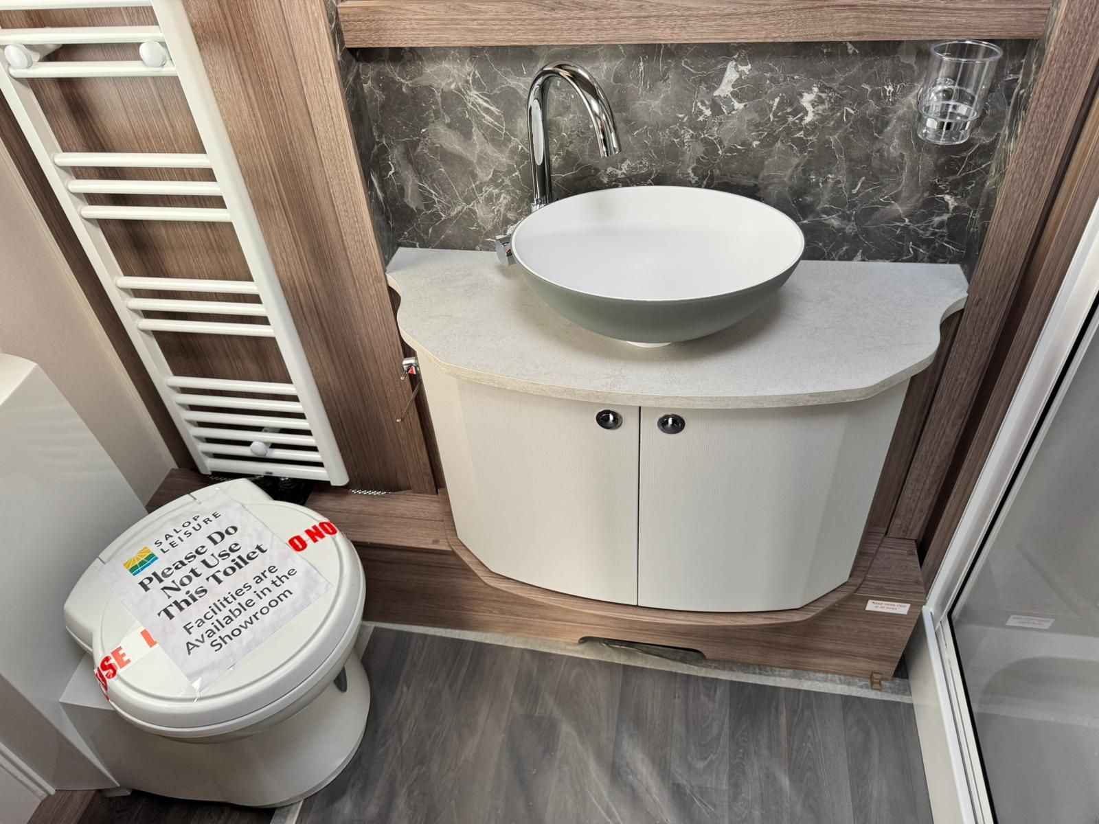 - Full-Width End Washroom with a separate shower, cassette toilet & vanity unit