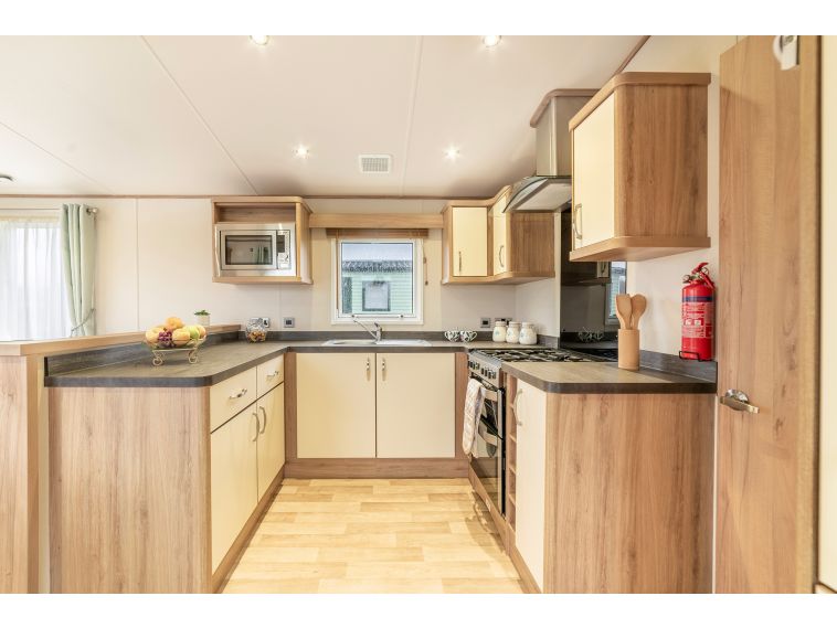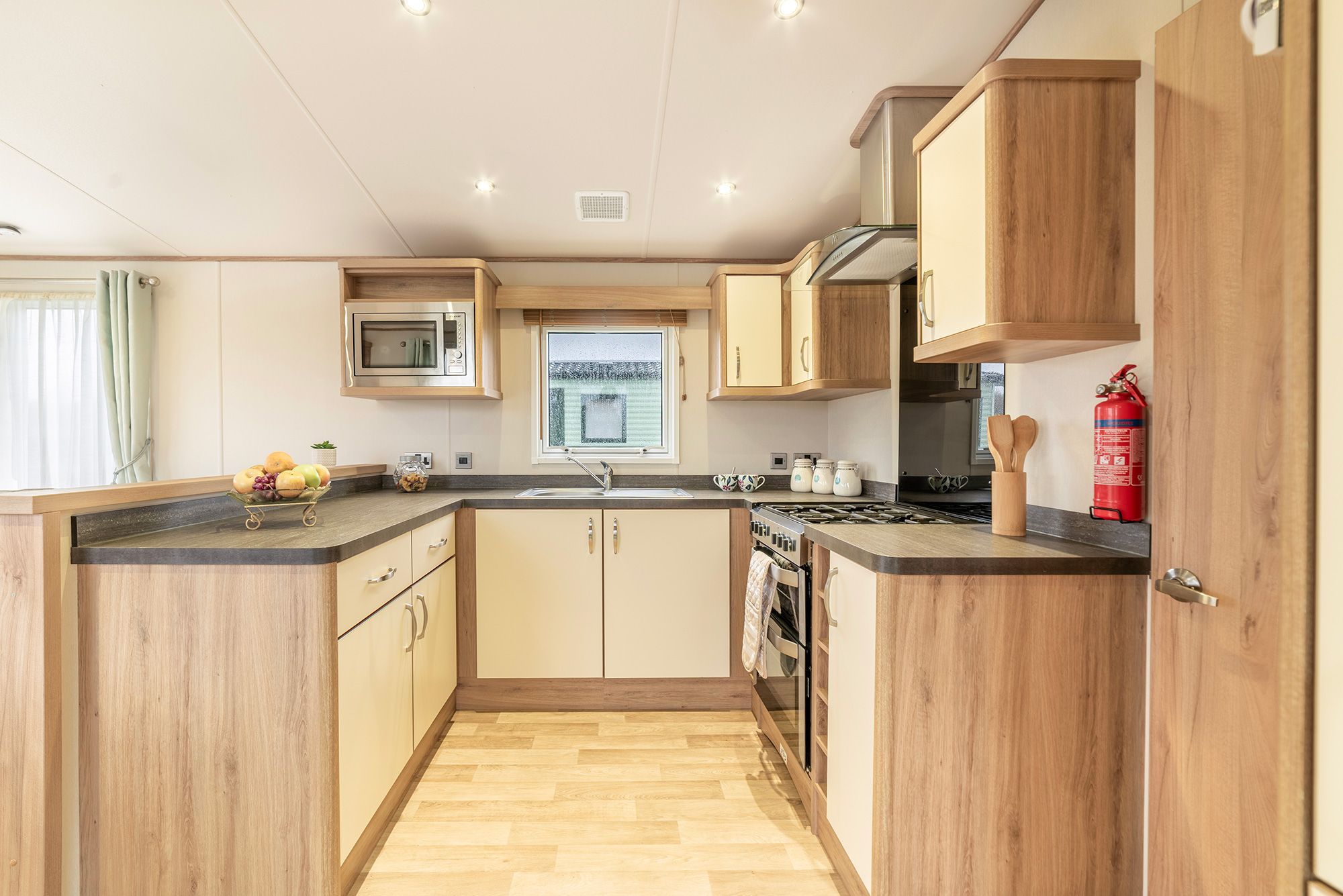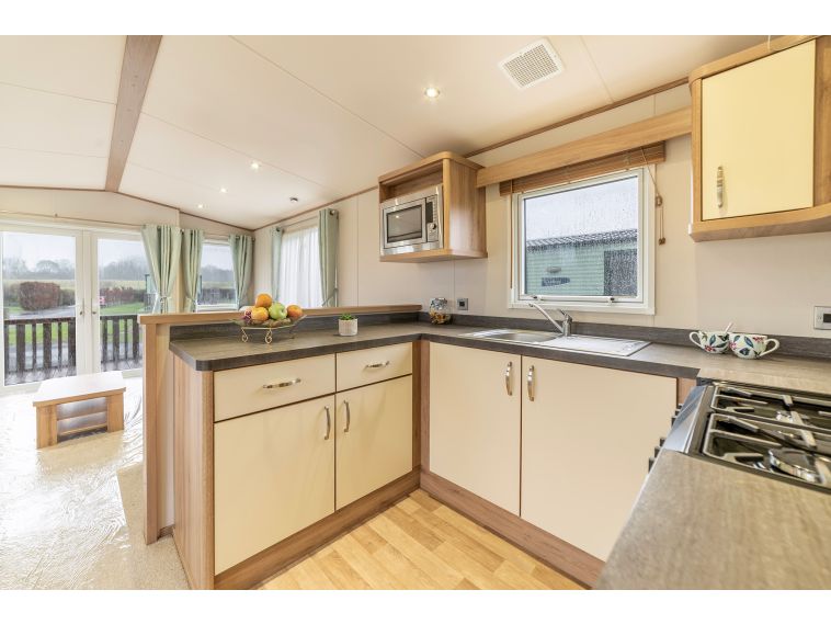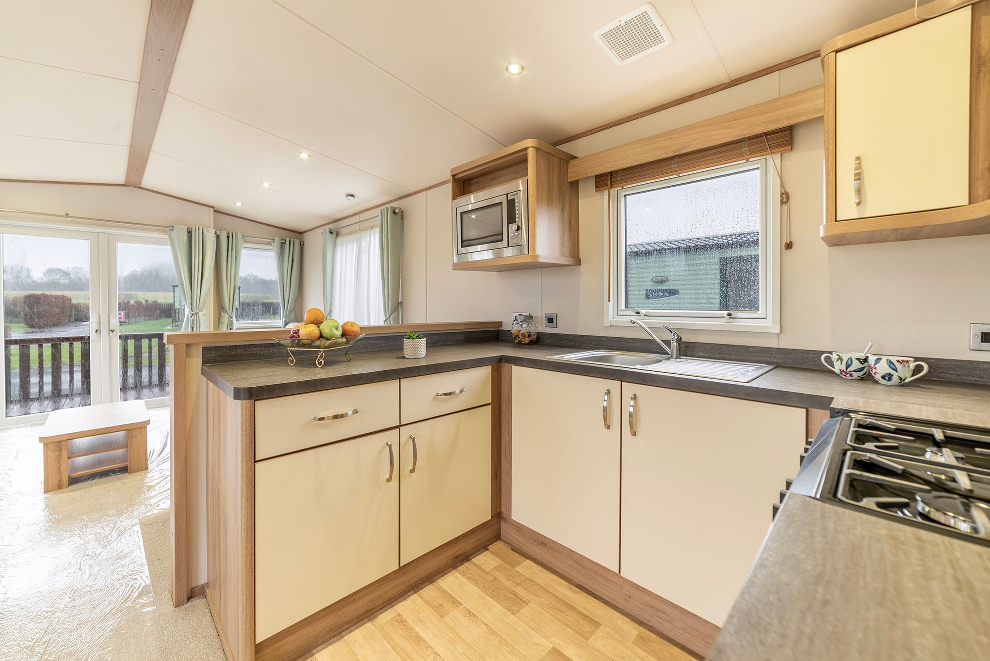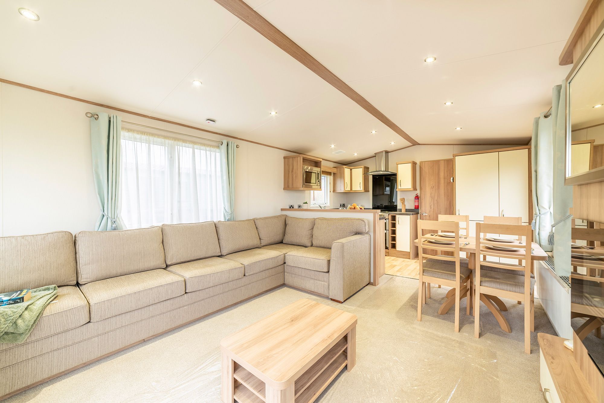 You enter the Hereford from the side door that takes you directly into the compact kitchen. The open plan living area is on your left and the bedrooms and bathrooms to your left.