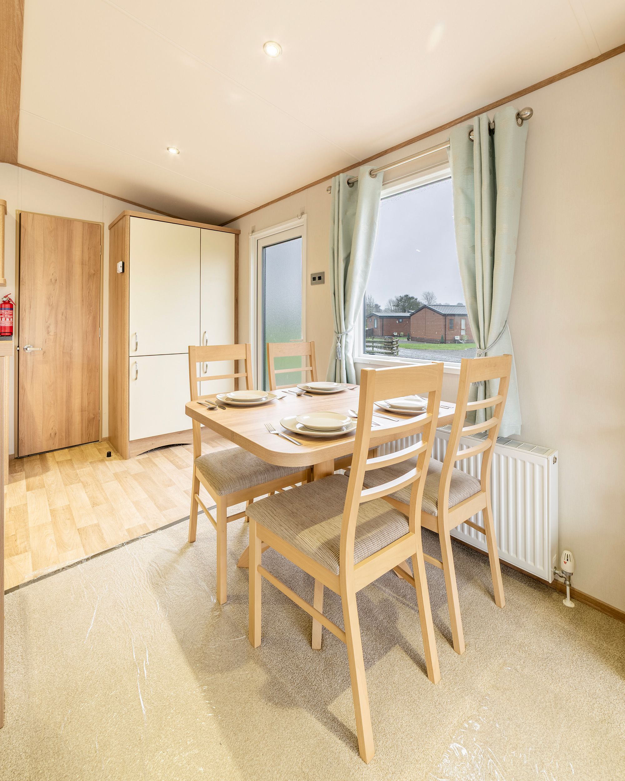 The lounge is light and airy. The patio doors take you directly onto the decking, which has plenty of room for garden furniture giving you extra living space in the summer months!
