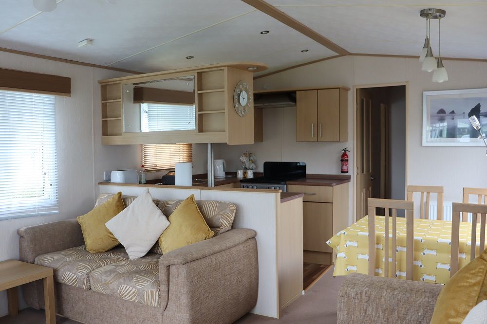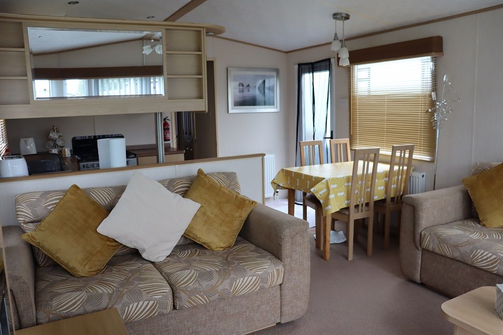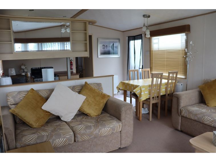 This popular 38 x 12ft 2 bedroom model features an additional en-suite shower to make the end master bedroom exceptional. You will love the feature fire place and the interior lighting which creates the perfect ambience. The fixed lounge seating features a pull out sofa bed, ensuring that your friends and family can join you on your next staycation adventure. And for the culinary expert the Hafren boasts a practical u-shaped kitchen, chrome cooker hood, integrated microwave and free standing fridge freezer.