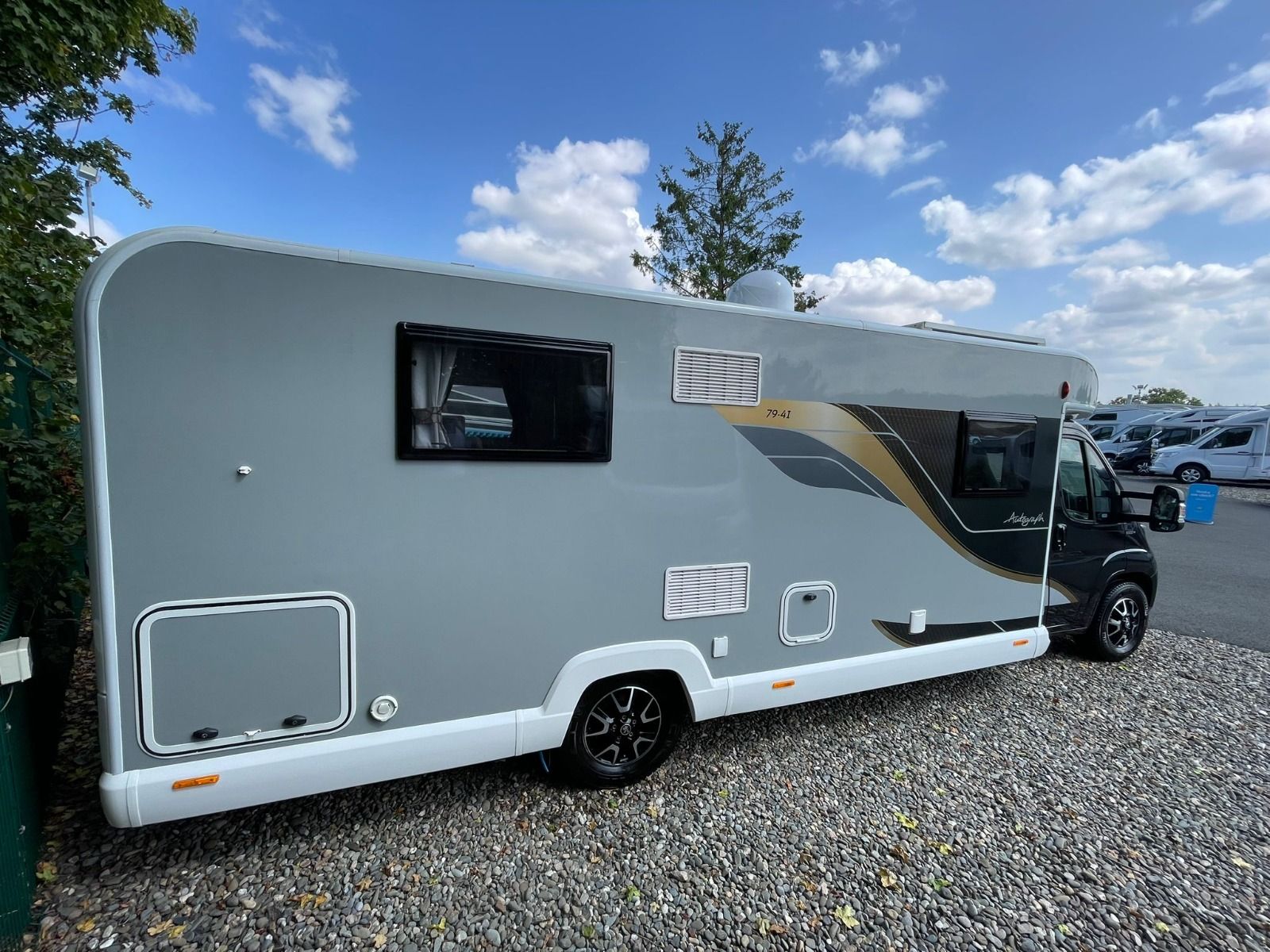 The 2022 Bailey Autograph 79-4i is a 4-berth motorhome with 4 seatbelts, ideal for couples or families. Now available at Salop Leisure in Shrewsbury, this model includes a garage, tow bar, and habitation air conditioning.