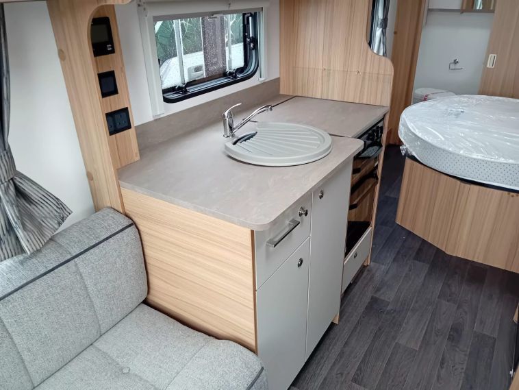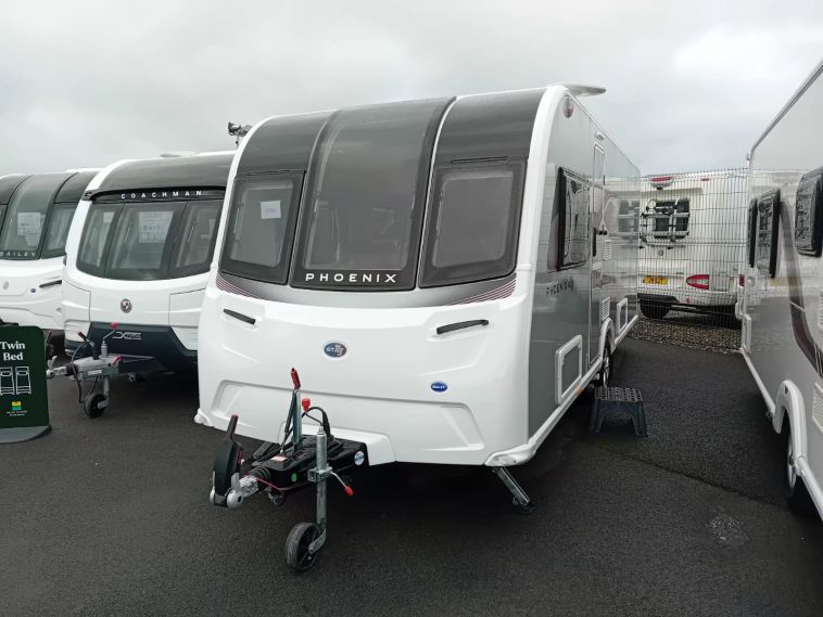 The Bailey Phoenix GT75 644 is a stylish 4-berth touring caravan offering comfort, practicality, and a high specification. Built with Bailey’s Alu-Tech body shell for strength and insulation, this model includes a fixed island bed, spacious layout, and a full end washroom. An auto engage motor mover and satellite system add further touring convenience.