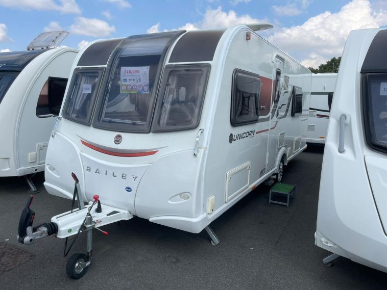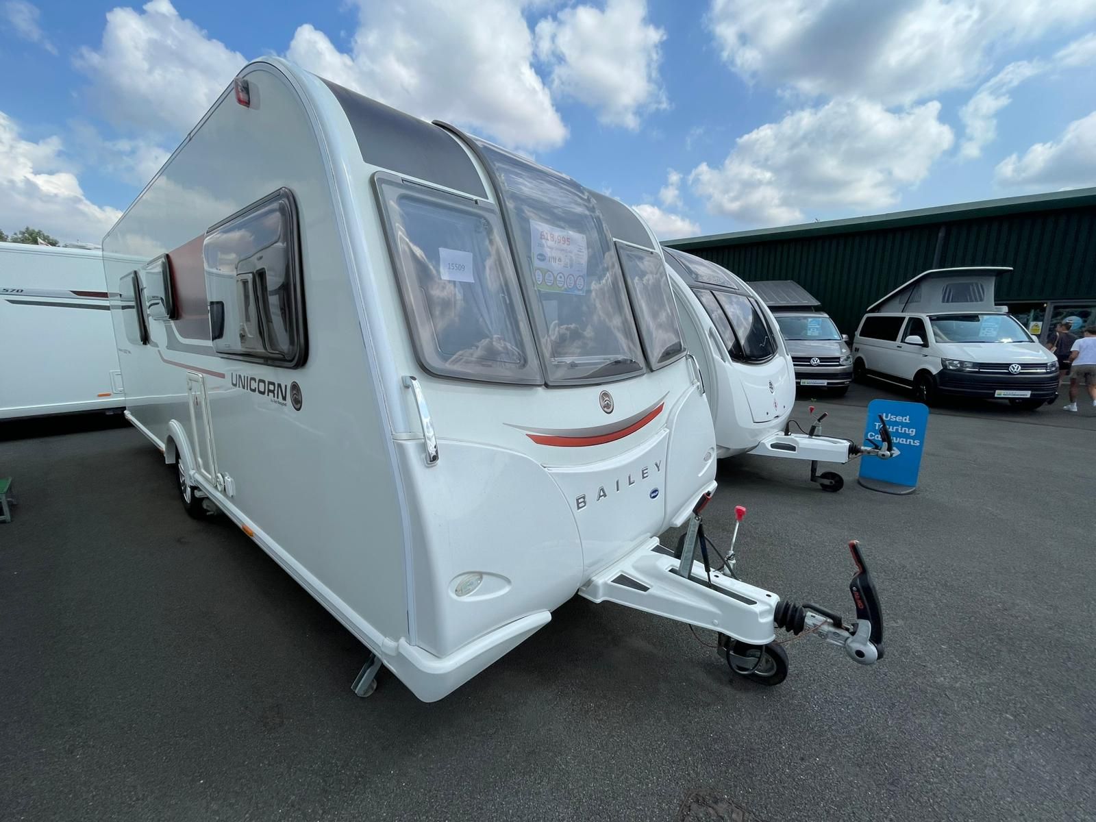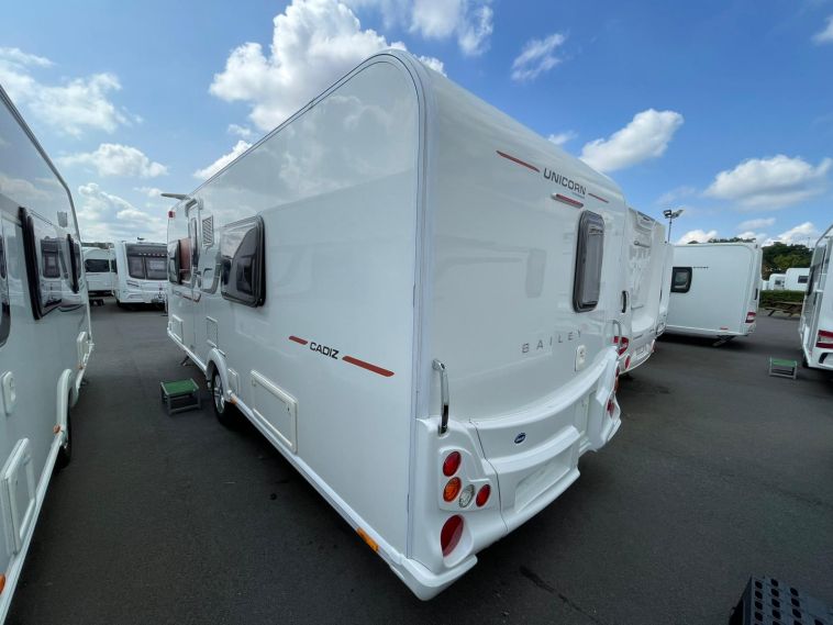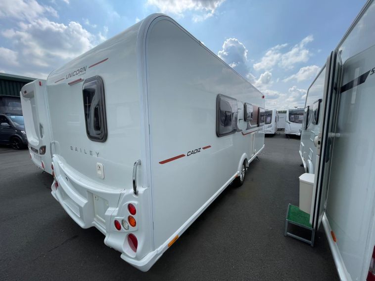 This 2018 Bailey Unicorn Cadiz is a premium 4-berth tourer featuring twin fixed single beds and a spacious end washroom. Built with Bailey's Alu-Tech body shell and fitted with Alde wet central heating, it's designed for year-round comfort. A manual engage motor mover adds convenience for easy positioning.