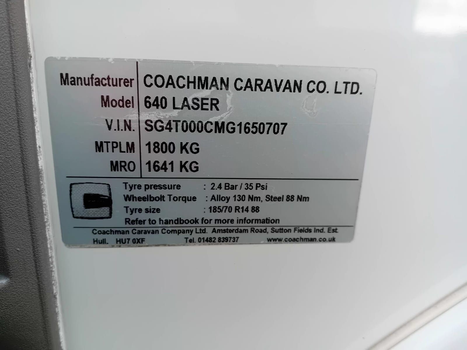 This 2016 Coachman Laser 640 is a high‑spec twin‑axle 4‑berth caravan, offering a solid, feature‑packed layout and year‑round touring comfort. Built to Coachman’s premium standards, it includes ALDE wet central heating and delivers practical luxury for couples or families.