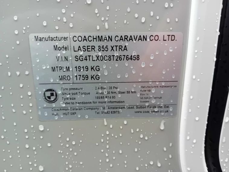 The 2026 Coachman Laser 855 Xtra is a top-of-the-range 4-berth twin axle caravan with ABC Advanced Bonded Construction and a premium interior. Featuring ALDE wet central heating, a Bluetooth speaker system, and heavy-duty corner steadies, this model offers exceptional comfort and build quality.