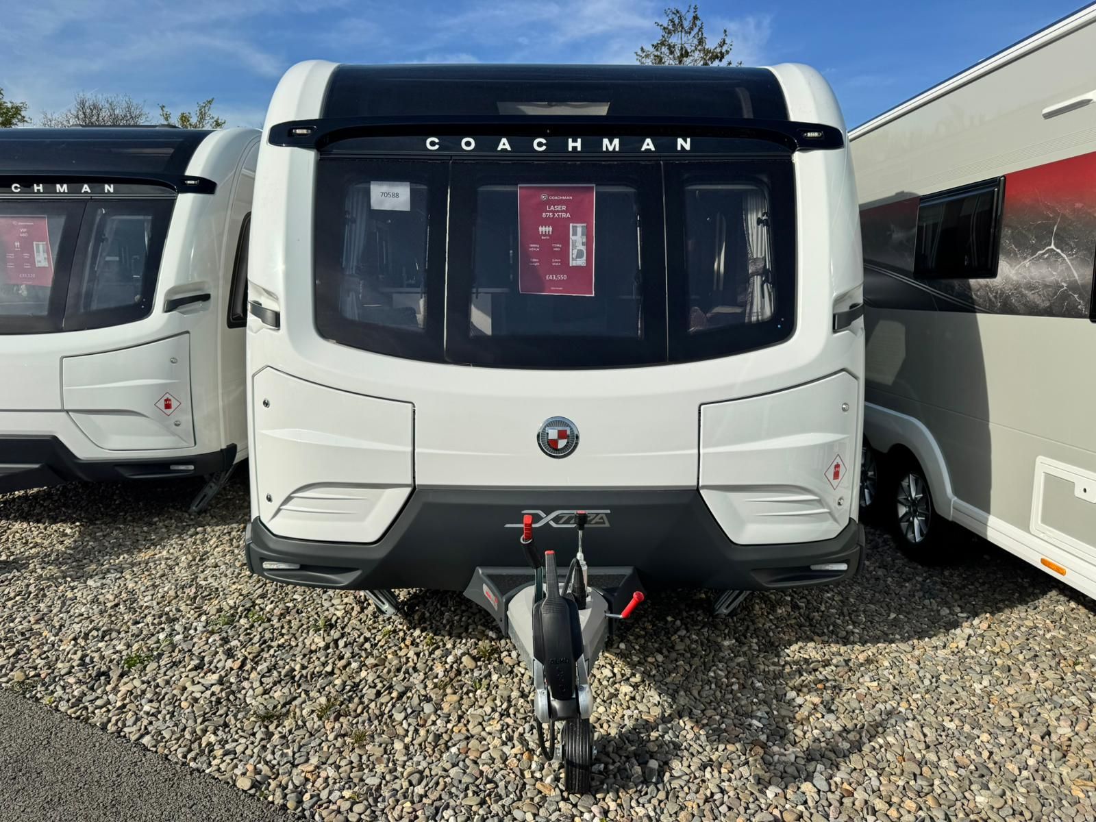 The 2026 Coachman Laser 875 Xtra is a four-berth, twin-axle caravan designed for luxury touring. Built with ABC (Advanced Bonded Construction), it features Alde wet central heating and a spacious island bed, making it an ideal choice for couples or families seeking comfort and refinement.