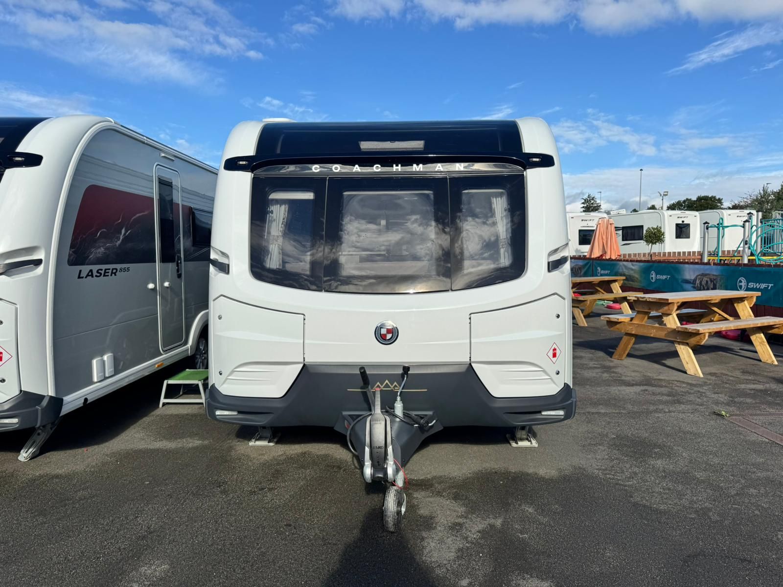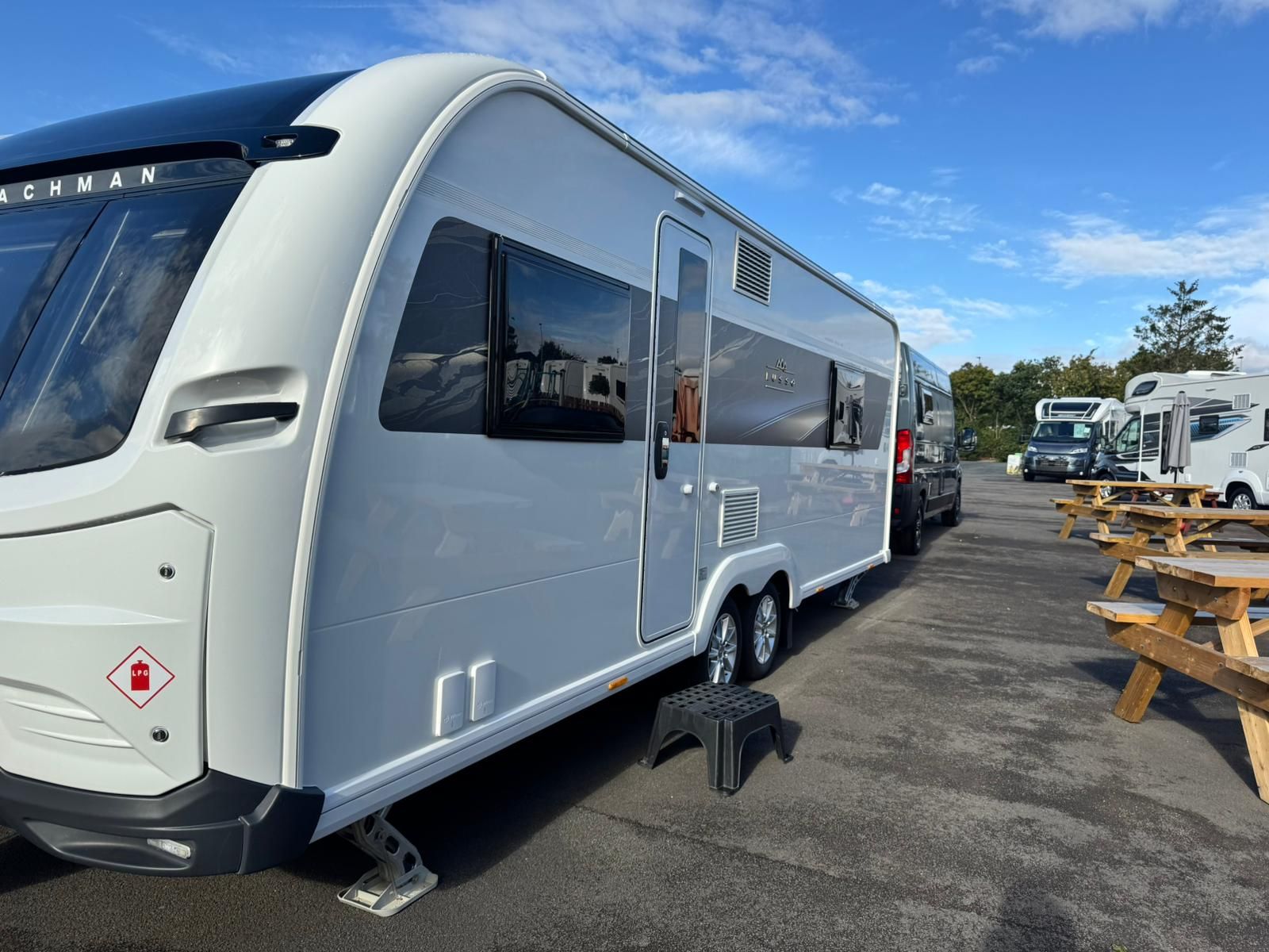 The 2026 Coachman Lusso II is a top-of-the-range 4-berth tourer featuring E&P self-levelling, air conditioning, ALDE wet central heating, and SOLID construction. Packed with premium tech, it also includes a solar panel for off-grid comfort.