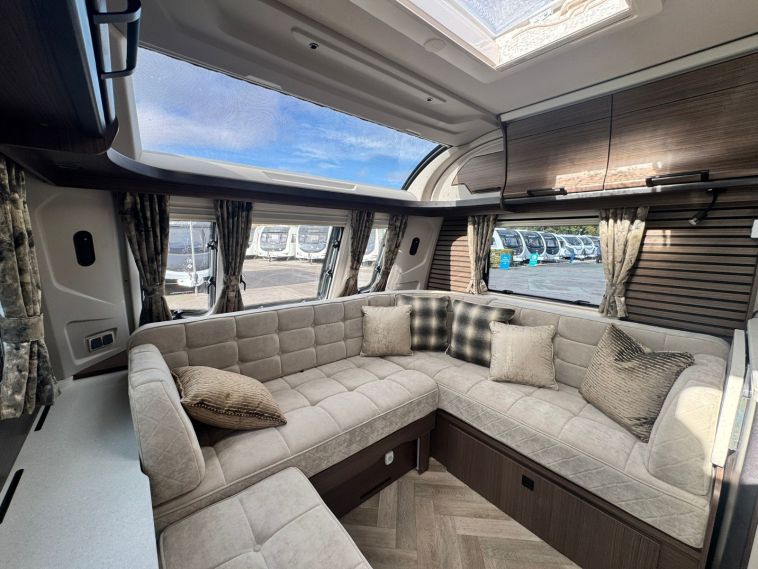 A flagship 4-berth caravan showcasing premium craftsmanship and advanced technology. Built with SOLID construction, the 2026 Coachman Lusso III offers exceptional comfort and style for discerning tourers, featuring E&P Self-Levelling and a solar panel for effortless travel and extended stays.