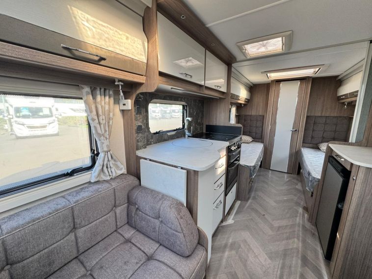 The 2026 Coachman VIP 565 is a top-spec 4-berth caravan featuring twin single beds, Alde wet central heating, and ATC for safer towing. Built to Coachman’s high standards, it includes an alarm system and delivers premium comfort throughout.