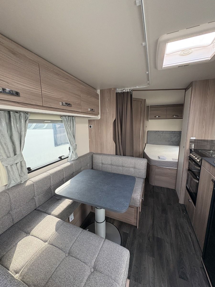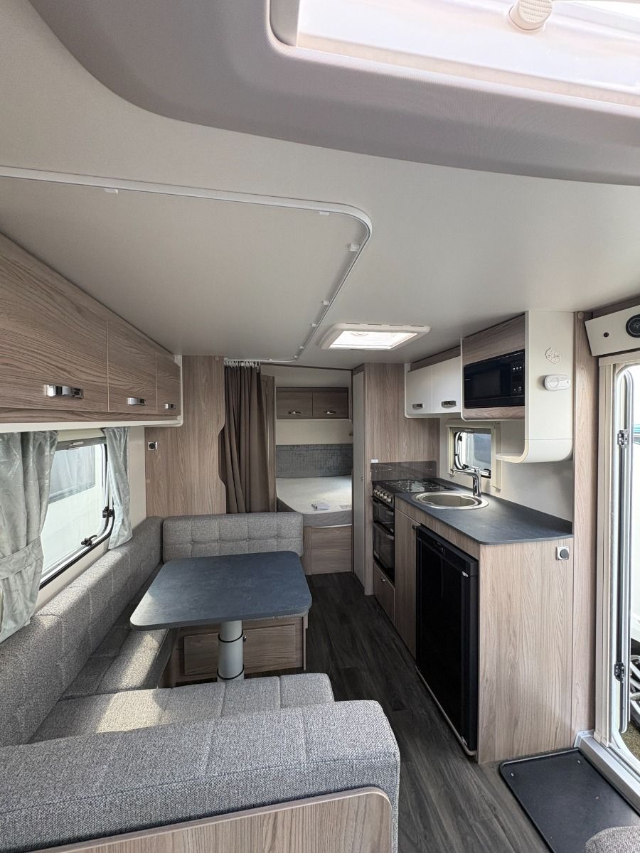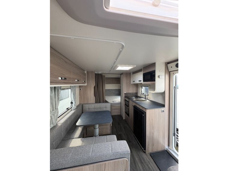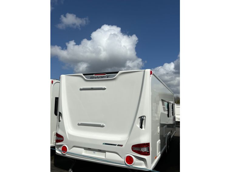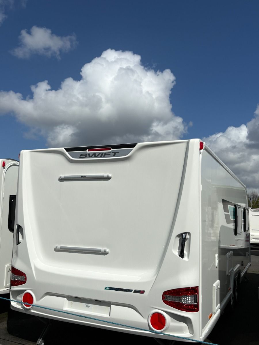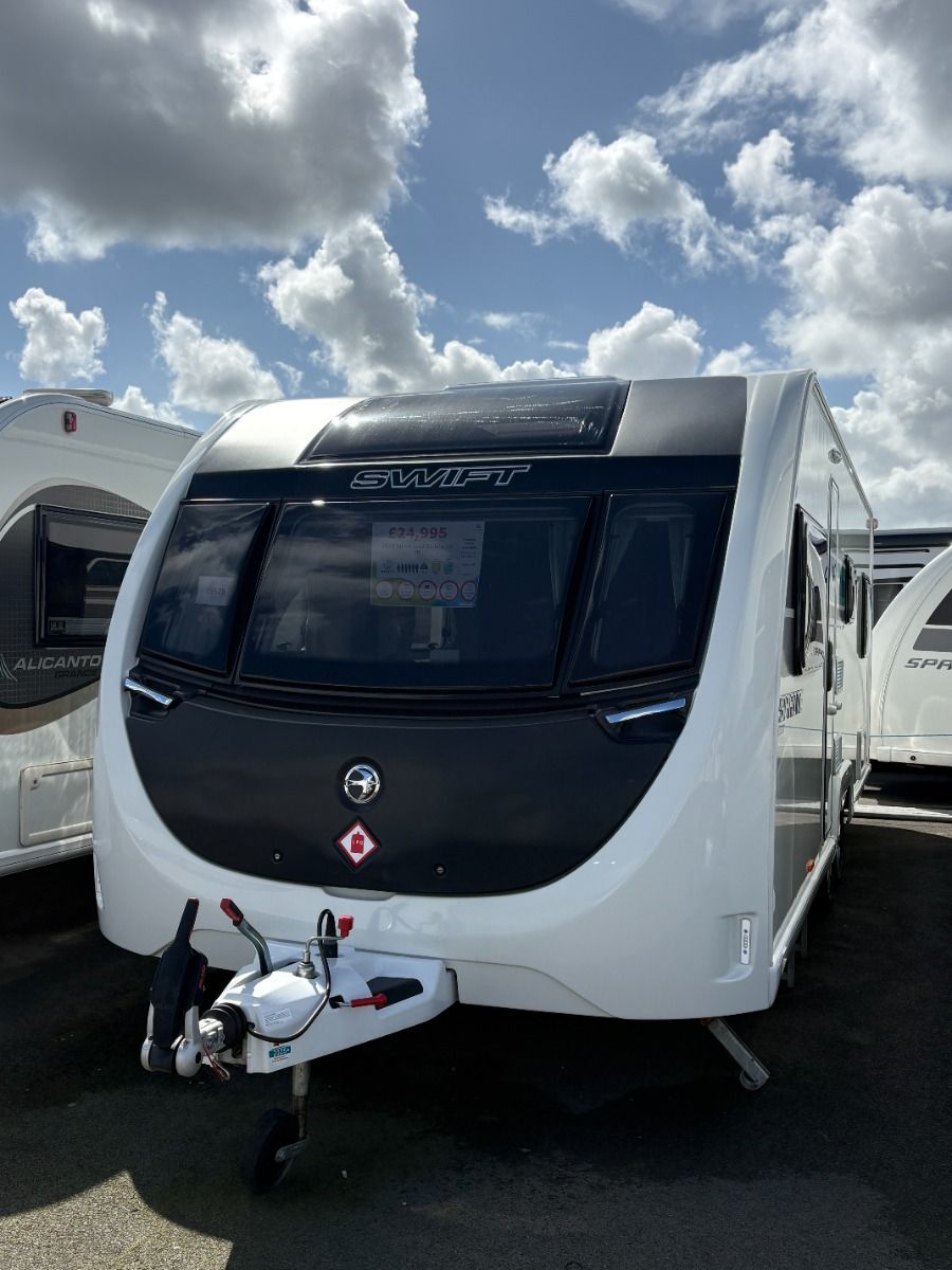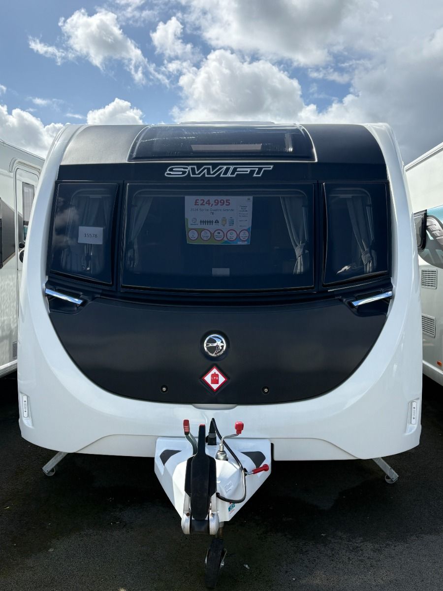 The 2024 Swift Sprite Quattro FB Grande is a 6 berth touring caravan, ideal for families wanting a spacious twin axle layout with flexible sleeping arrangements.