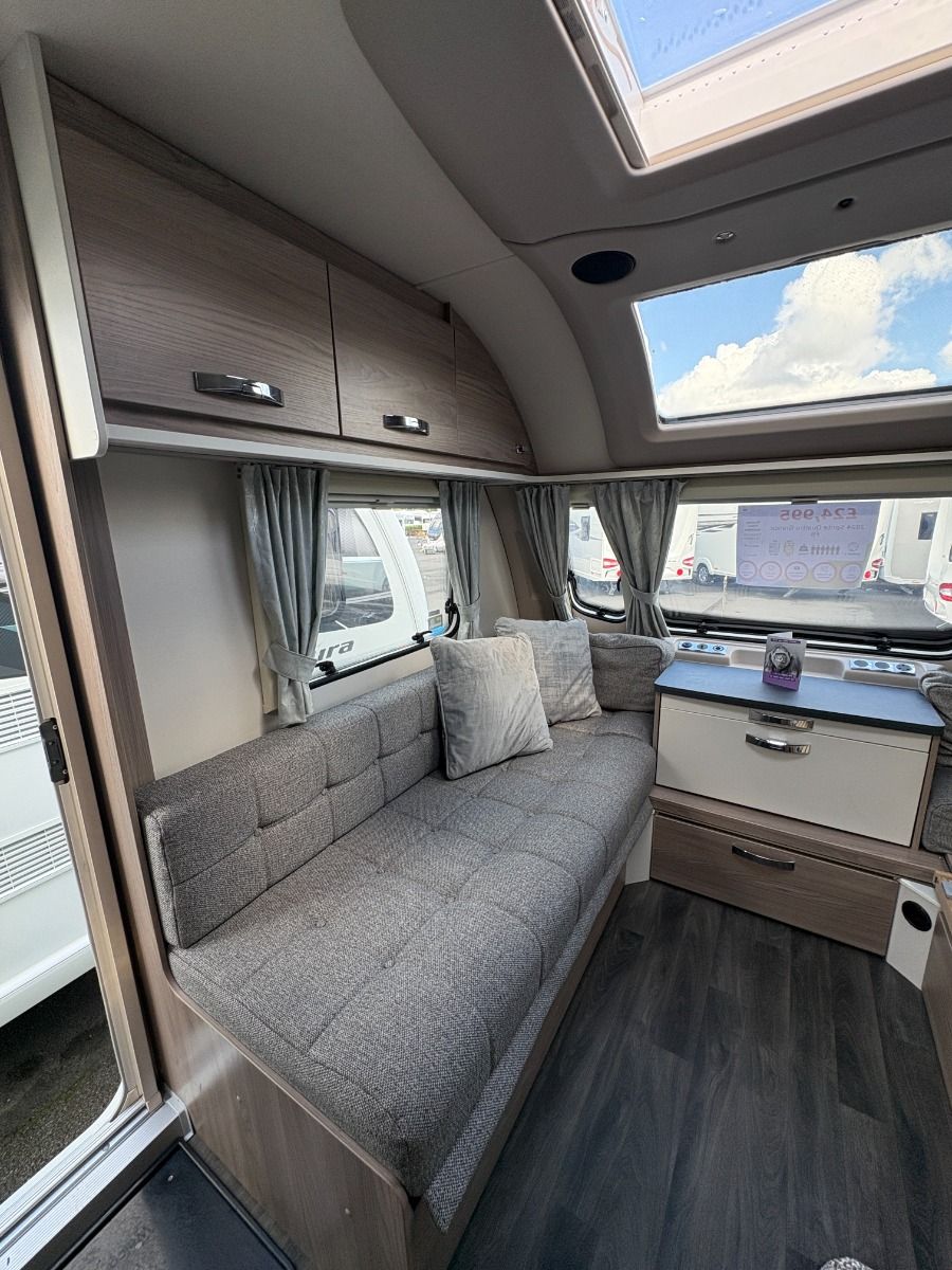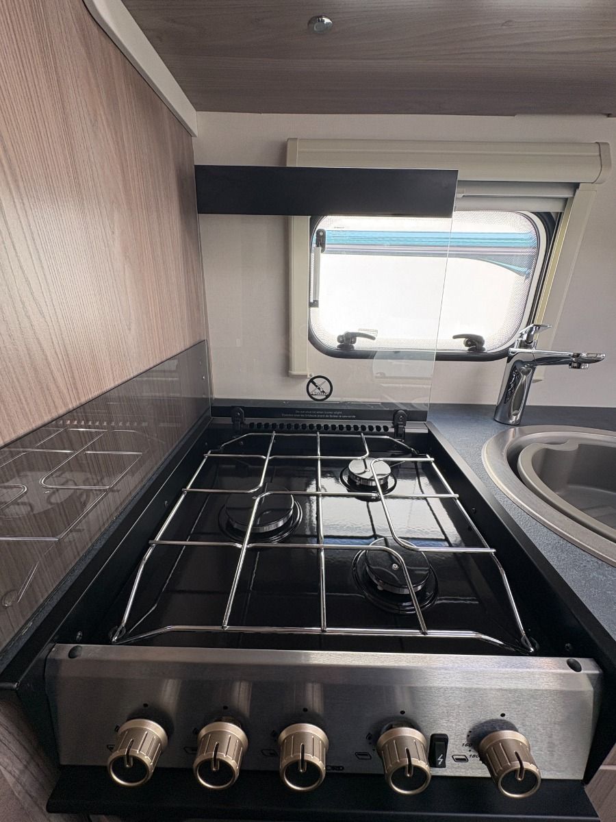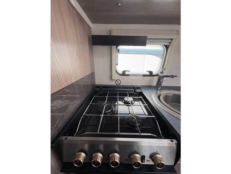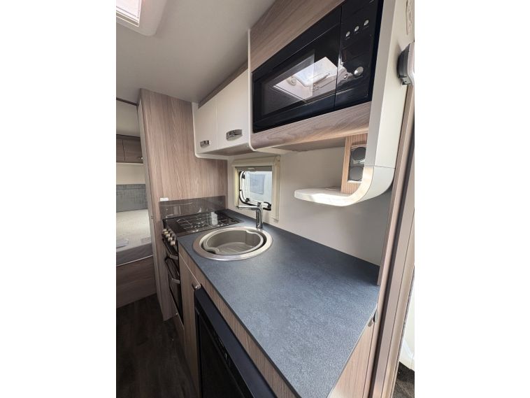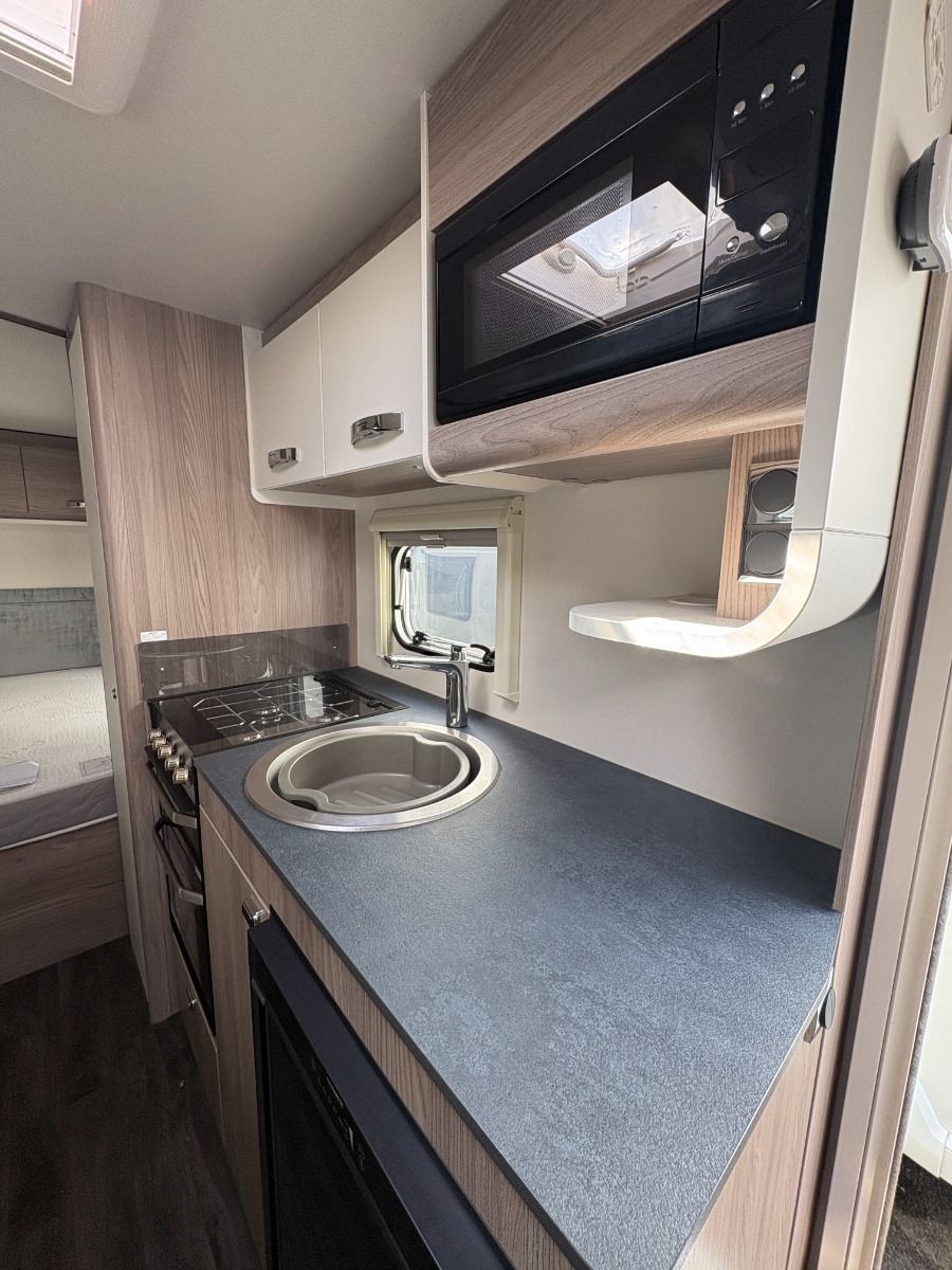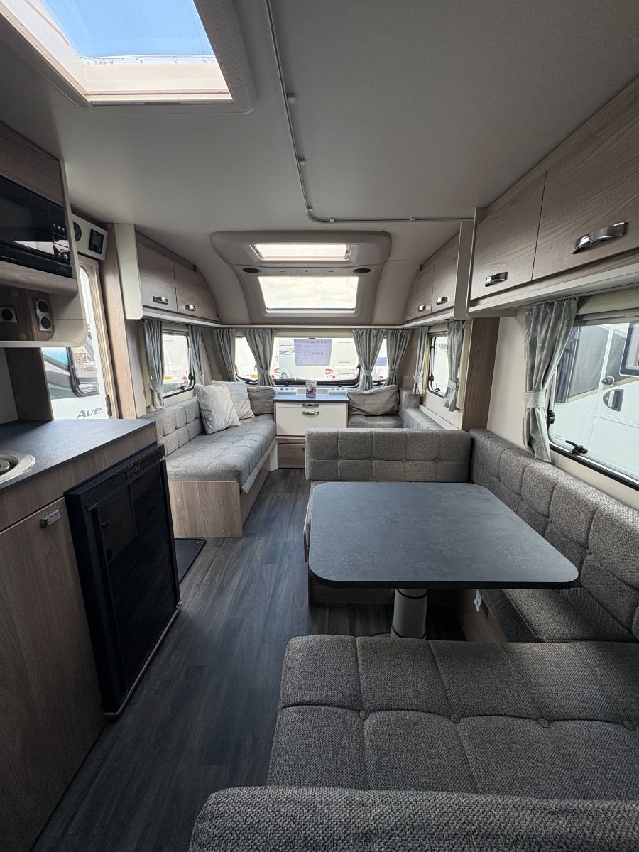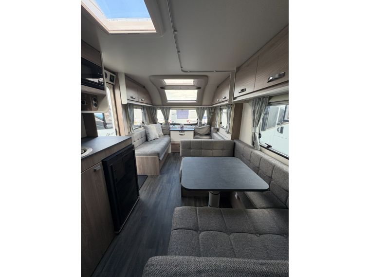 The 2024 Swift Sprite Quattro FB Grande is a 6 berth touring caravan, ideal for families wanting a spacious twin axle layout with flexible sleeping arrangements.