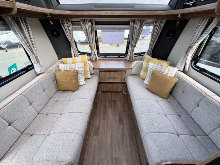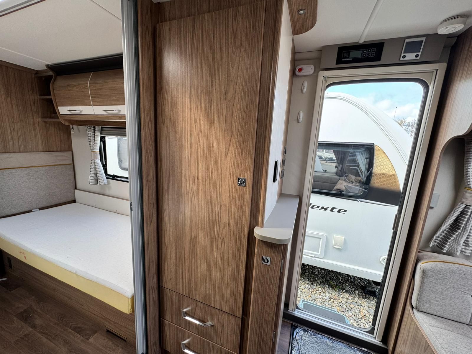 The 2017 Swift Celeste 530 SE is a 3 berth touring caravan, ideal for couples or small families wanting a comfortable and practical touring layout. Available now at Salop Leisure in Shrewsbury, this model features SMART construction and a well-designed interior for relaxed touring.