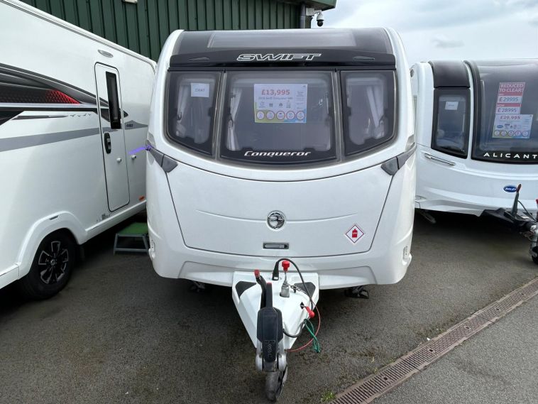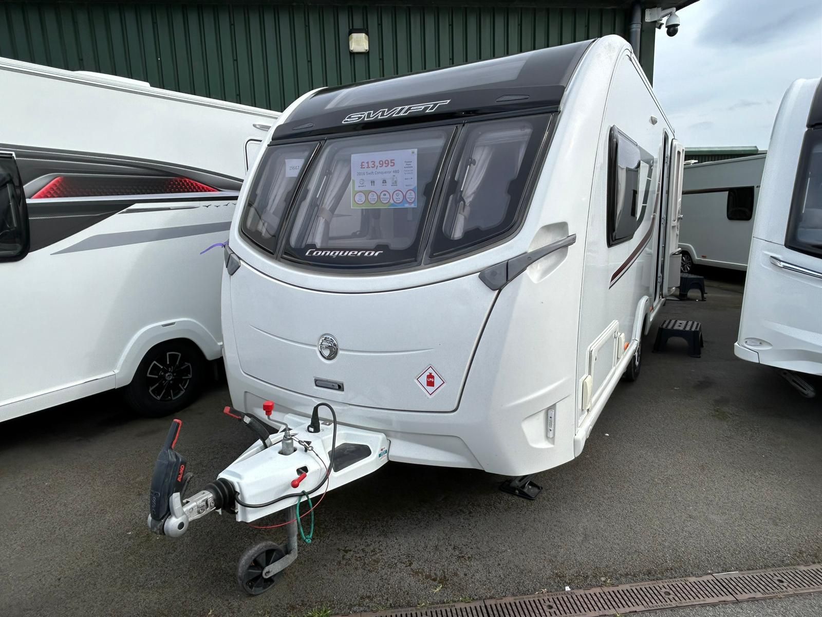 The 2016 Swift Conqueror 480 is a 2 berth touring caravan, ideal for couples seeking a comfortable and well-equipped touring layout.