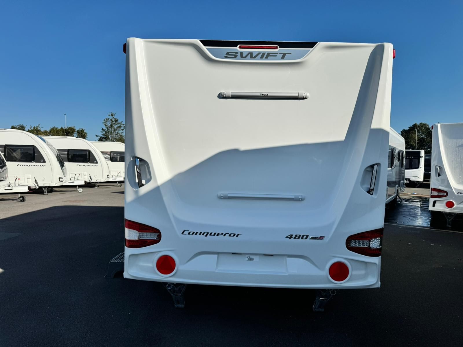 The 2026 Swift Conqueror 480 is a 2 berth touring caravan, ideal for couples seeking luxury, comfort, and modern technology on the road. Available now at Salop Leisure in Shrewsbury, this model combines premium construction with advanced features for an exceptional touring experience.