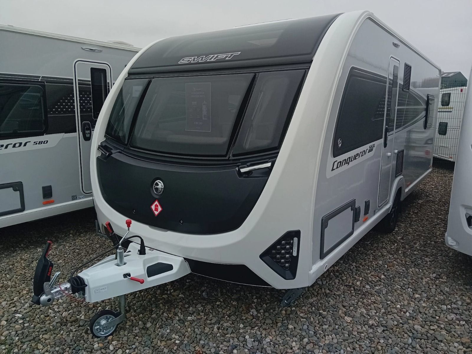 The 2026 Swift Conqueror Grande 560L is a 4 berth touring caravan, designed to deliver extra space, comfort, and advanced features for couples or families. Available now at Salop Leisure in Shrewsbury, this model combines premium heating, durable build quality, and modern style for an exceptional touring experience.