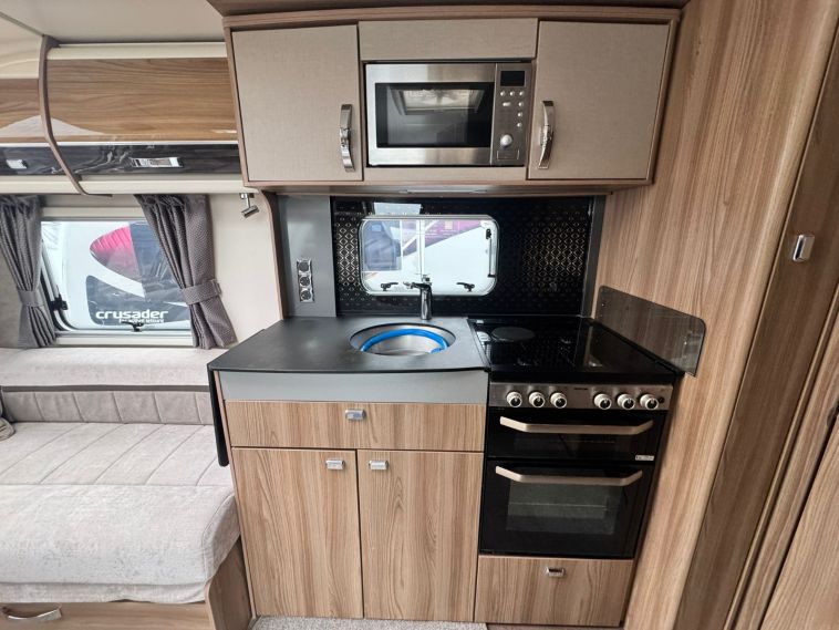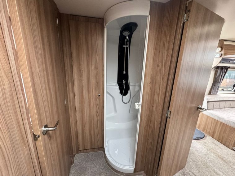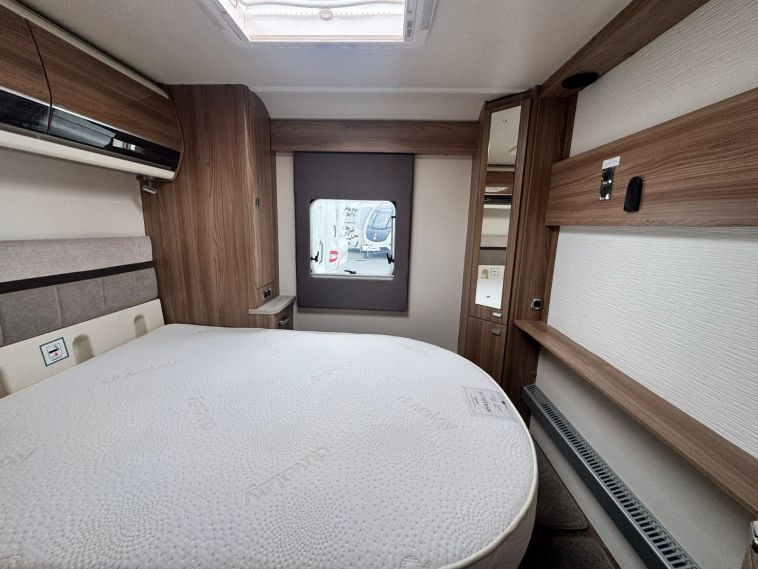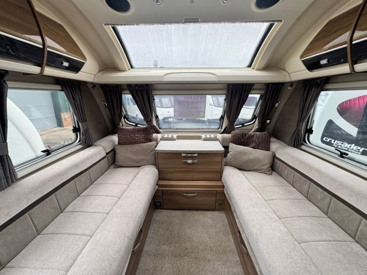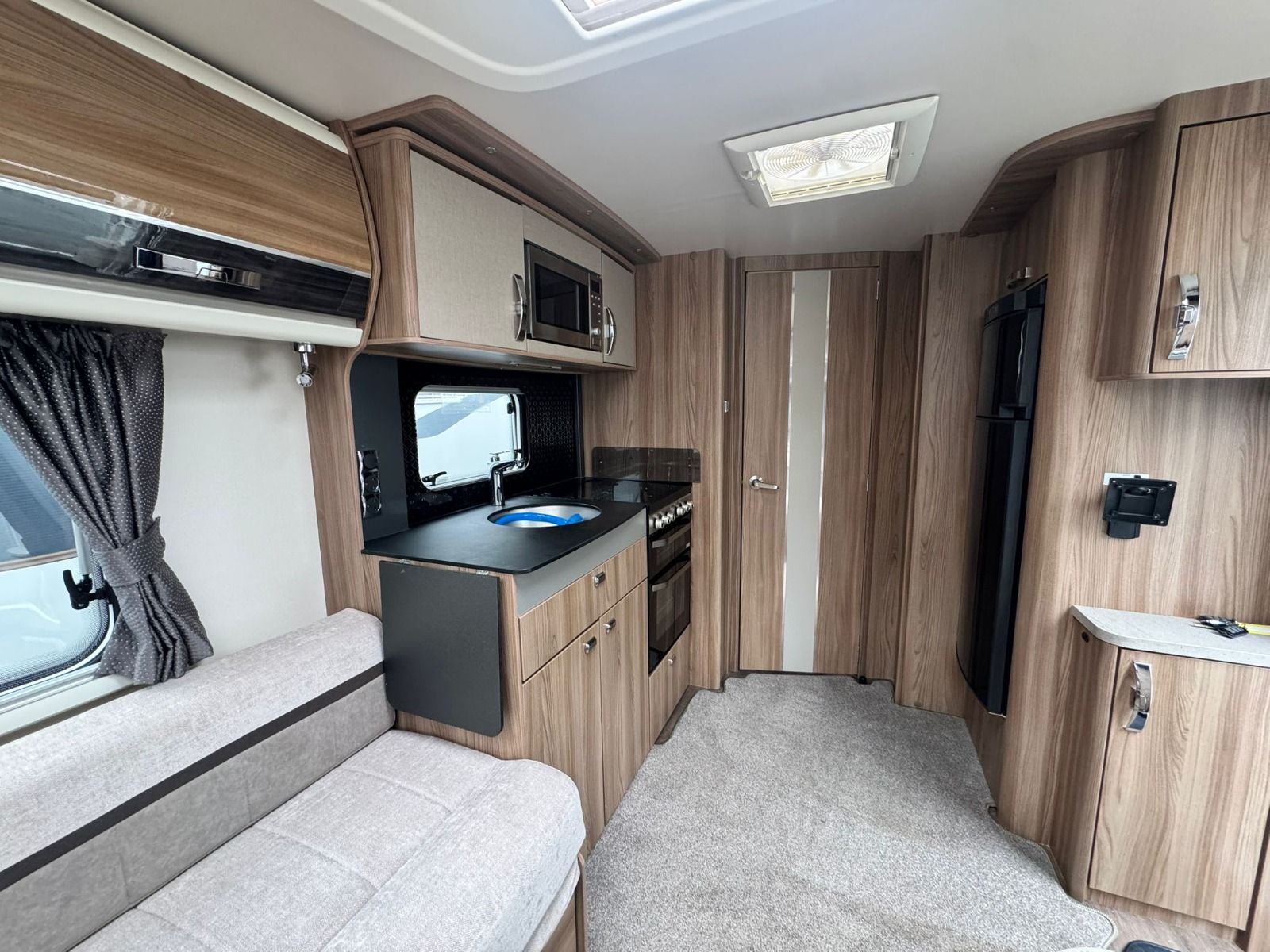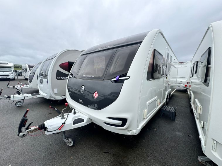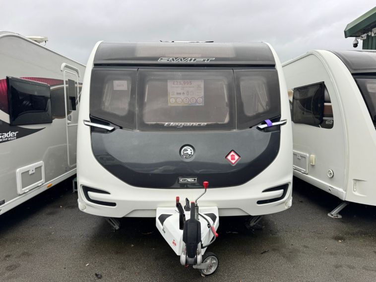The Swift Elegance Grande 835 is a 4 berth touring caravan, ideal for couples or families wanting a spacious twin axle layout with premium comfort.