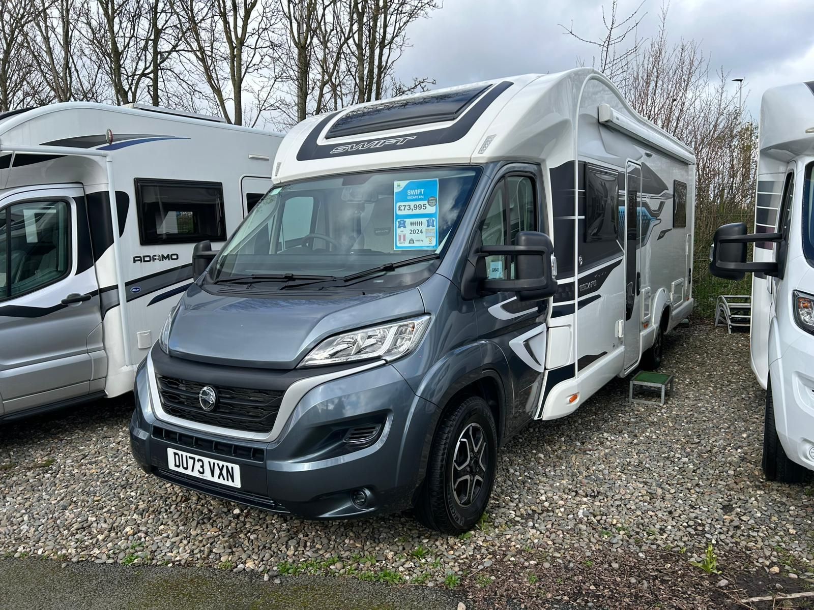 The 2024 Swift Escape 674 is a 6-berth motorhome, suitable for families or groups. Available now at Salop Leisure in Shrewsbury, this model features 6 seatbelts and a practical layout for touring.