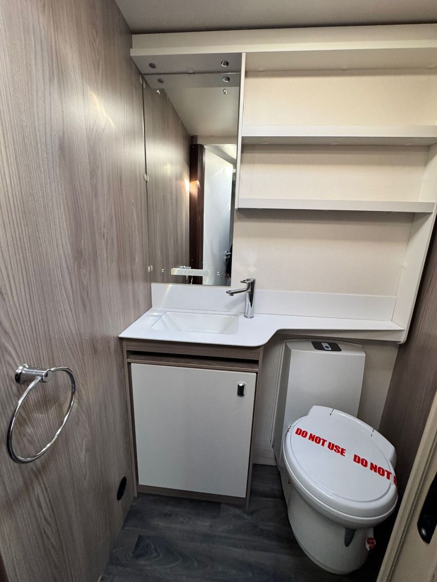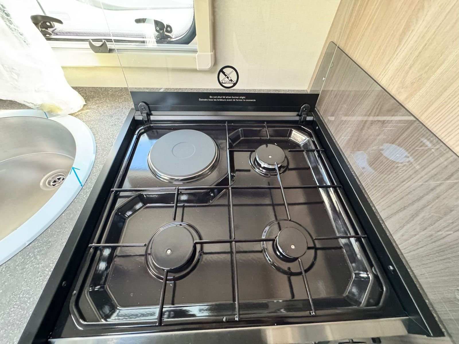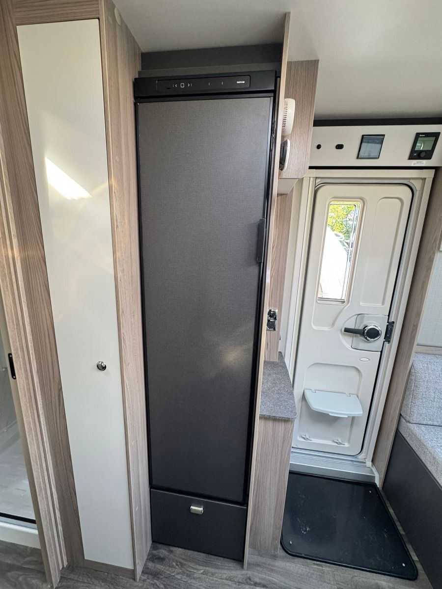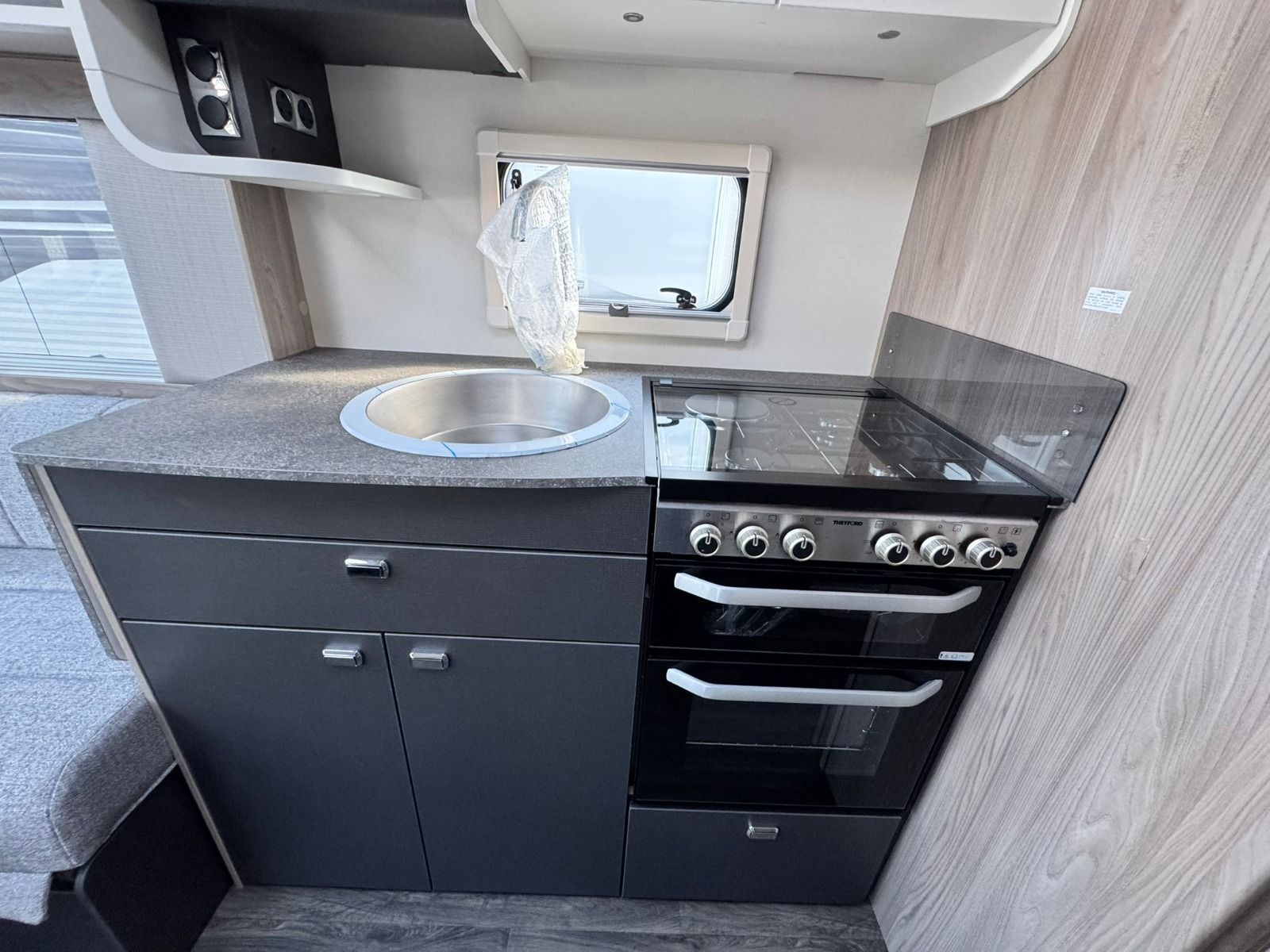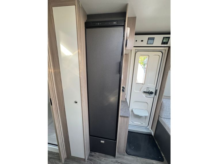 A twin-axle, 8ft-wide luxury touring caravan designed for space, comfort, and modern convenience.