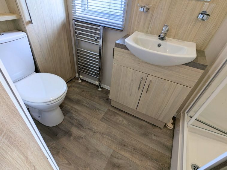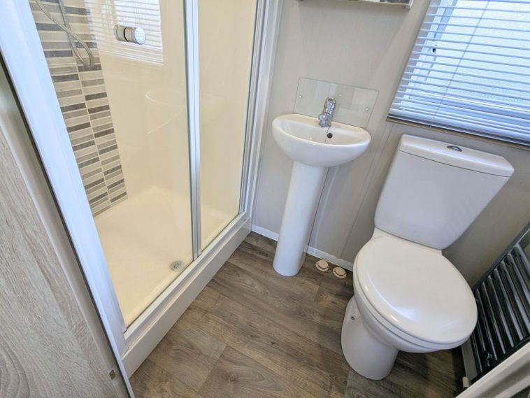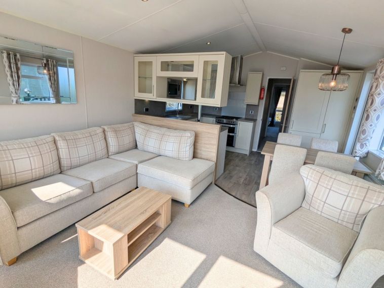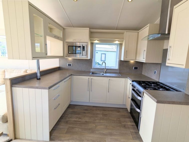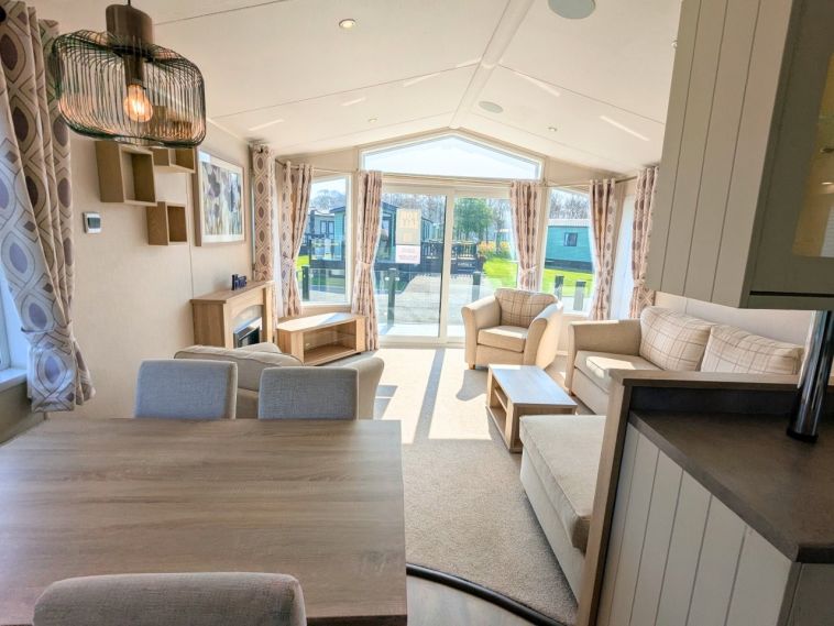 Inside, the Willerby Aspen Lodge offers an open plan living area complete with large windows for maximum natural light, and a fully equipped kitchen. The master bedroom features a large window, vanity unit and en suite shower room.
